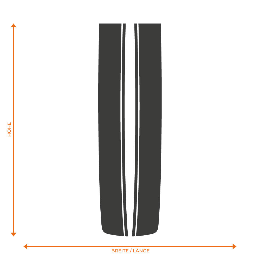 Verpasse deiner Motorhaube ein sportliches Upgrade mit diesen leicht gebogenen Doppel-Rennstreifen! Das zeitlose Rallyestreifen-Design verleiht deinem Wagen sofort eine kraftvolle Optik und echtes Motorsport-Feeling. Ob dezent Ton-in-Ton oder als kontrastreicher Eyecatcher – du hast die Wahl, denn das Set ist bei uns in individueller Größe und Farbe erhältlich. Ein hochwertiges Dekor für alle, die Wert auf Details legen und ihrem Auto einen individuellen Stempel aufdrücken wollen. Im Lieferumfang ist der Dekorbogen mit beiden Motiven.