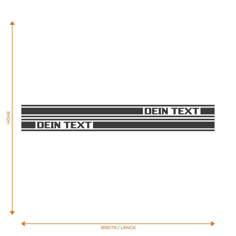 Dieses klassische GT-Streifendesign bringt echte Rennsport-Atmosphäre an die Flanken deines Autos. Die parallele Linienführung sorgt für eine zeitlose Ästhetik und betont die Länge deines Fahrzeugs auf sportliche Weise. Damit das Dekor perfekt zu deinem individuellen Stil passt, ist dieser hochwertige Aufkleber in individueller Größe und Farbe erhältlich und bietet Platz für deinen persönlichen Wunschtext. Gefertigt aus langlebiger Qualitätsfolie, garantiert dieser Sticker ein professionelles Erscheinungsbild, das alle Blicke auf sich zieht. Im Lieferumfang ist der Dekorbogen mit zwei Motiven für beide Fahrzeugseiten.
