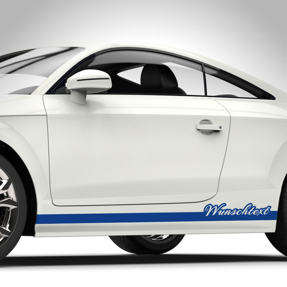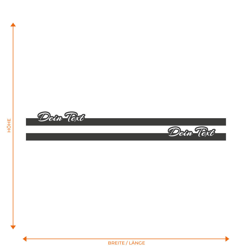 Verleih deinem Fahrzeug einen eleganten Touch mit diesem Seitenstreifen-Design in geschwungener Schreibschrift-Optik. Die filigranen Linien unterstreichen die Dynamik deiner Karosserie und bieten dir die Möglichkeit, deinen ganz persönlichen Wunschtext stilvoll in Szene zu setzen. Damit das Dekor perfekt mit deinem Wagen harmoniert, ist dieser hochwertige Aufkleber für dich in individueller Größe und Farbe erhältlich. Die erstklassige Folienqualität sorgt für ein brillantes Ergebnis und eine langlebige Veredelung, die dein Auto zu einem echten Unikat macht. Im Lieferumfang ist der Dekorbogen mit zwei Motiven für beide Fahrzeugseiten.