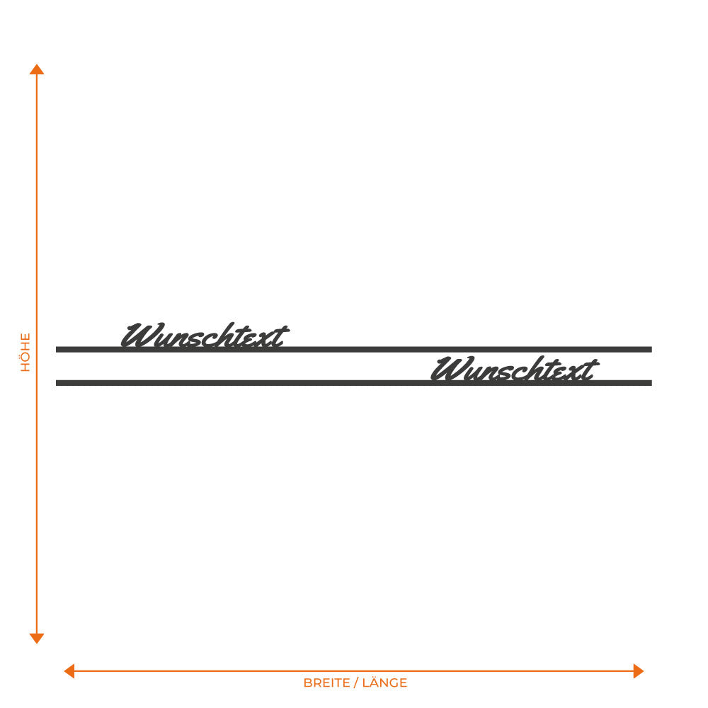 Verleihe deinem Wagen eine unverwechselbare Note mit diesem eleganten Seitenstreifen! Das Design kombiniert eine feine Zierlinie mit einem stilvollen Schriftzug welcher gleichzeitig Raum für deinen eigenen Wunschtext bietet. So wird dein Fahrzeug zu einem Ausdruck deiner Persönlichkeit, der Blicke auf sich zieht, ohne zu protzig zu wirken. Gefertigt aus beständiger Markenfolie, trotzt dieser Aufkleber den Elementen und bewahrt seine Farbbrillanz dauerhaft. Für eine perfekte Anpassung an dein Auto ist dieses exklusive Dekor in individueller Größe und Farbe erhältlich. Im Lieferumfang ist der Dekorbogen mit zwei Motiven für beide Fahrzeugseiten.