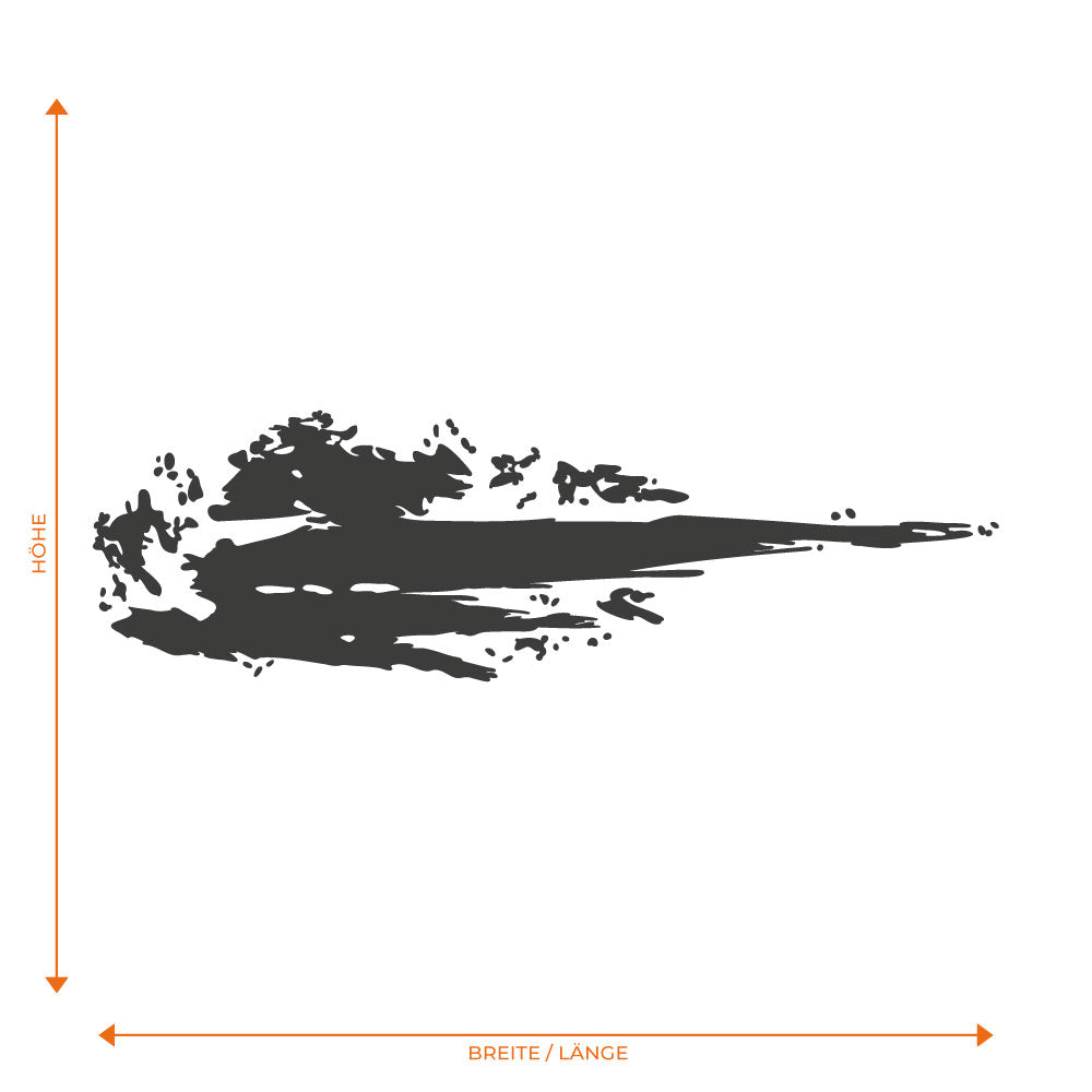 Dynamischer Schmutz‑Aufkleber in hochwertiger Qualität: kräftiges, abstraktes Spritz‑Design aus langlebiger Vinylfolie mit einfacher Verklebung und bei Bedarf rückstandslos entfernbar. Ideal für die Seiten, Türen und Kotflügel: Verleihe deinem Auto einen markanten, sportlichen Look mit urbanem Style und in individueller Größe und Farbe erhältlich, so passt er perfekt zu deinem Fahrzeug. Im Lieferumfang ist der Dekorbogen mit einem Motiv. Für die Verklebung auf beiden Fahrzeugseiten können zwei Motive, davon eines gespiegelt, bestellt werden.