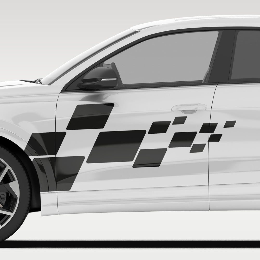 Mit diesem modernen Autoaufkleber im dynamischen Kachel-Design verleihst du deinem Fahrzeug eine sportliche und elegante Note. Die klaren Formen sorgen für einen zeitgemäßen Look und setzen dezente, aber wirkungsvolle Akzente. Hochwertige Folie, witterungsbeständig und farbstabil, haftet zuverlässig auf allen glatten Fahrzeugflächen und lässt sich einfach anbringen. Ideal für Türen sowie Seitenbereiche und in individueller Größe und Farbe erhältlich, so passt er perfekt zu deinem Fahrzeug. Im Lieferumfang ist der Dekorbogen mit einem Motiv. Für die Verklebung auf beiden Fahrzeugseiten können zwei Motive, davon eines gespiegelt, bestellt werden.