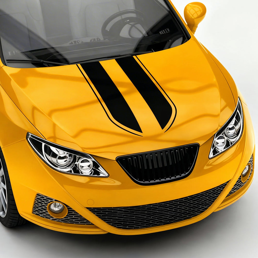 Setze ein sportliches Statement auf der Straße! Diese elegant geschwungenen Rennstreifen laufen zur Front hin spitz zu und verleihen deinem Wagen eine aerodynamische, angriffslustige Optik. Das Design betont die Konturen deiner Motorhaube und sorgt für einen modernen Performance-Look. Damit der Aufkleber exakt zu deinem Fahrzeugtyp passt, ist er bei uns in individueller Größe und Farbe erhältlich. Im Lieferumfang ist der Dekorbogen mit beiden Motiven.
