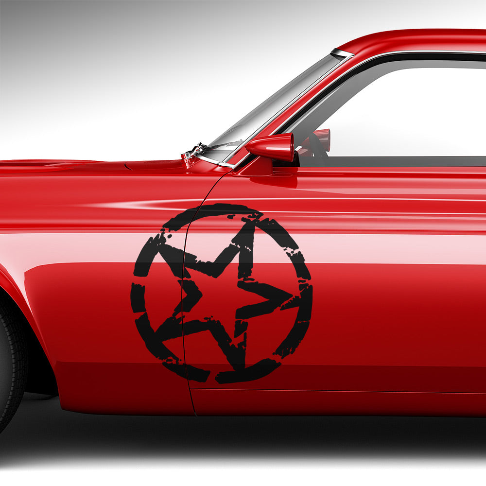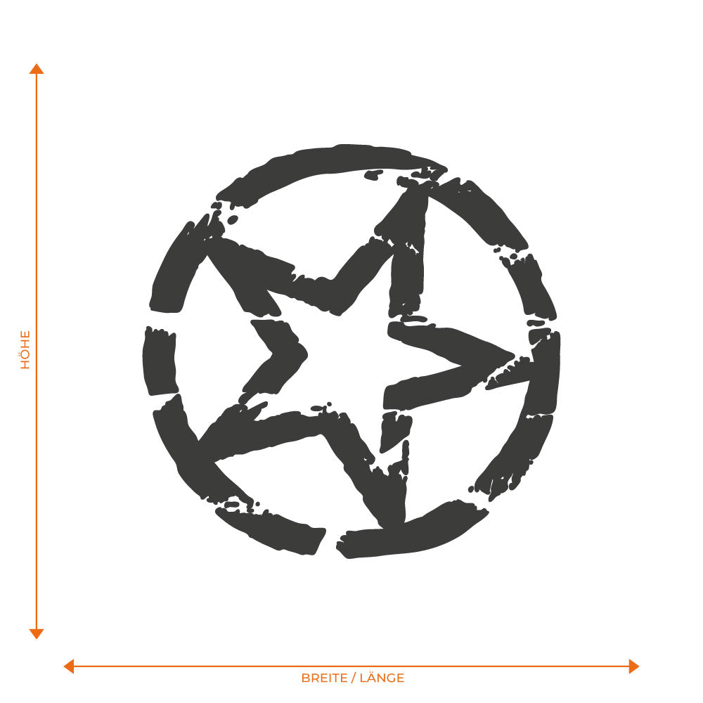 Markant und ausdrucksstark präsentiert sich dieser hochwertige Autoaufkleber mit grungigem Sternmotiv. Das kantige Design verleiht deinem Fahrzeug einen rebellischen, modernen Look und zieht garantiert Blicke auf sich. Ideal für alle, die ein starkes Statement setzen möchten. Gefertigt aus langlebiger Qualitätsfolie eignet sich der Aufkleber für viele Fahrzeugbereiche und ist in individueller Größe und Farbe erhältlich, sodass du ihn perfekt an deinen Stil anpassen kannst. Im Lieferumfang ist der Dekorbogen mit einem Motiv. Für die Verklebung auf beiden Fahrzeugseiten können zwei Motive, davon eines gespiegelt, bestellt werden.