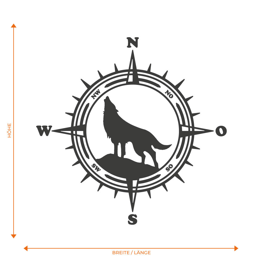 Bereit für das nächste Abenteuer? Mit diesem edlen Kompass-Wolf-Design verwandelst du deinen Van oder PKW in ein echtes Expeditionsfahrzeug. Das Motiv vereint Freiheitsdrang mit einer zeitlosen Ästhetik und ist der ideale Begleiter für alle, die gerne abseits bekannter Pfade unterwegs sind. Die hochwertige Folie trotzt mühelos den Elementen auf deinen Reisen. Damit der Look perfekt mit deinem Fahrzeug harmoniert, ist dieser Aufkleber bei uns in individueller Größe und Farbe erhältlich. Im Lieferumfang ist der Dekorbogen mit einem Motiv. Für die Verklebung auf beiden Fahrzeugseiten können zwei Motive, davon eines gespiegelt, bestellt werden. Bei einer gespiegelten Variante sind die Buchstaben dennoch korrekt lesbar.